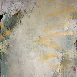 Unterstützt werden die Farbflächen durch freudiges Experimentieren mit Materialien. Sand, Papierfasern oder auch Strukturpaste verhindern, dass die Bilder zu ebenmäßig, zu glatt ausfallen. Dazu tragen hier und da auch zeichnerische Elemente, fast immer aber Kratzspuren bei, die von einem sehr ungestümen Malprozess zeugen. In diesem Malprozess spielen auch glückliche Zufälle eine Rolle, wie eine unerwartete Konfrontation von Farbe und Material, die Wiederentdeckung einer zunächst übermalten, dann aber wieder freigelegten Farbschicht, der plötzlich eine neue Bedeutung zuwächst und das Bild in sich schlüssig macht. Die Bilder leben also nicht von der bloßen Abbildung, sondern von einem dynamisch-fließenden Miteinander von Form, Farbe und Material.