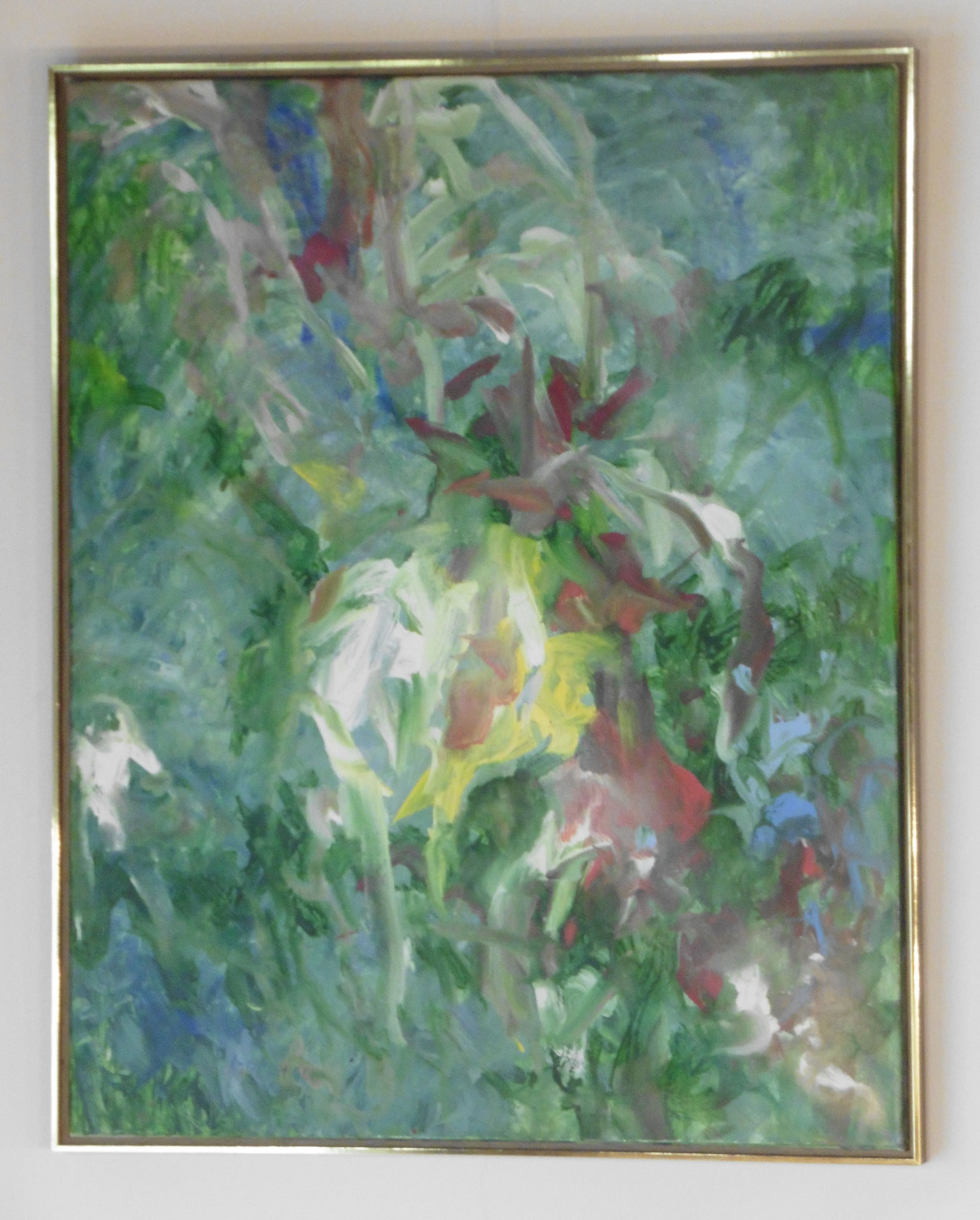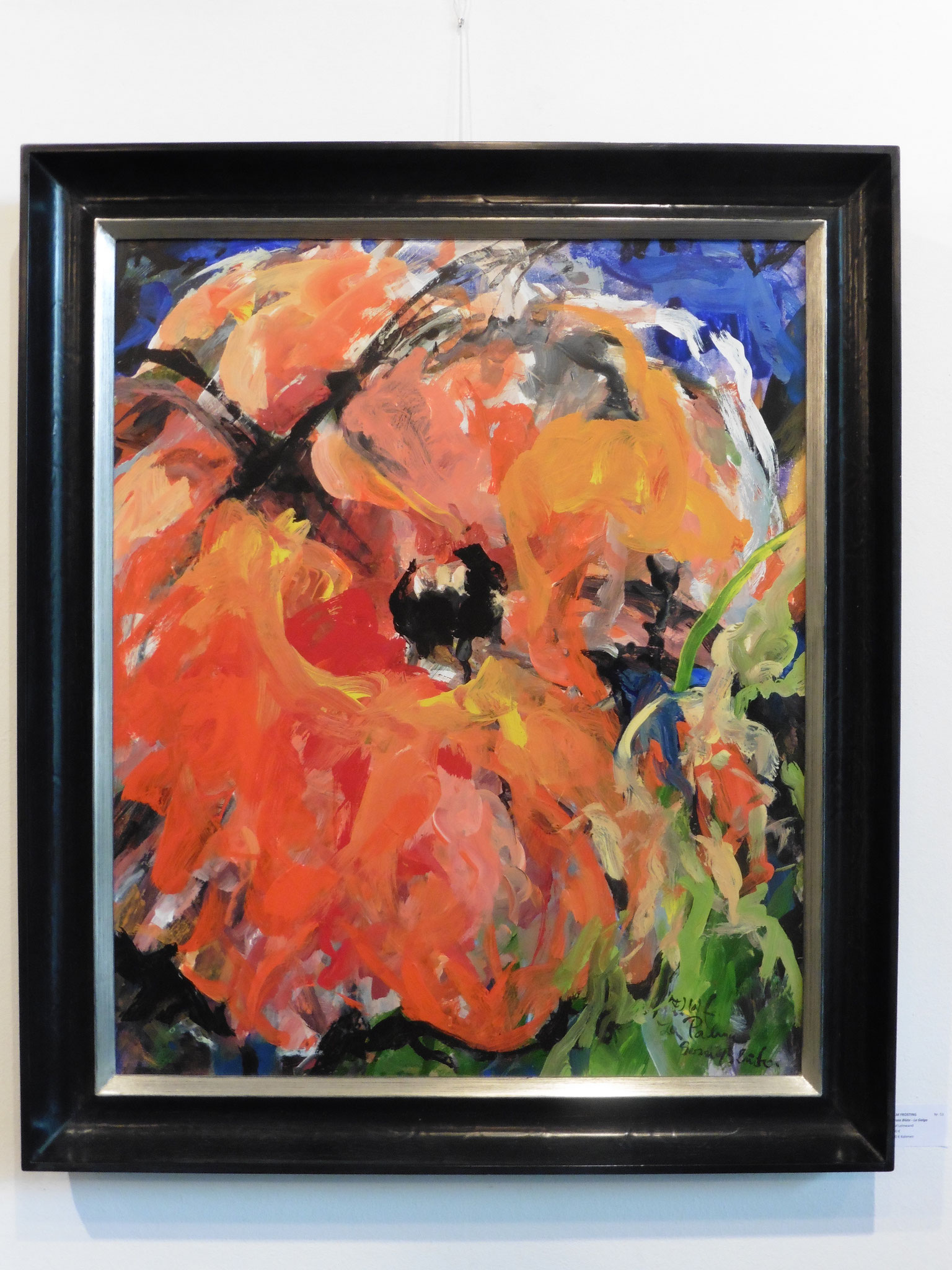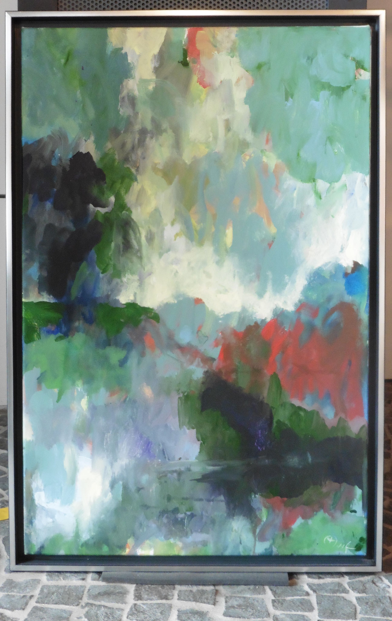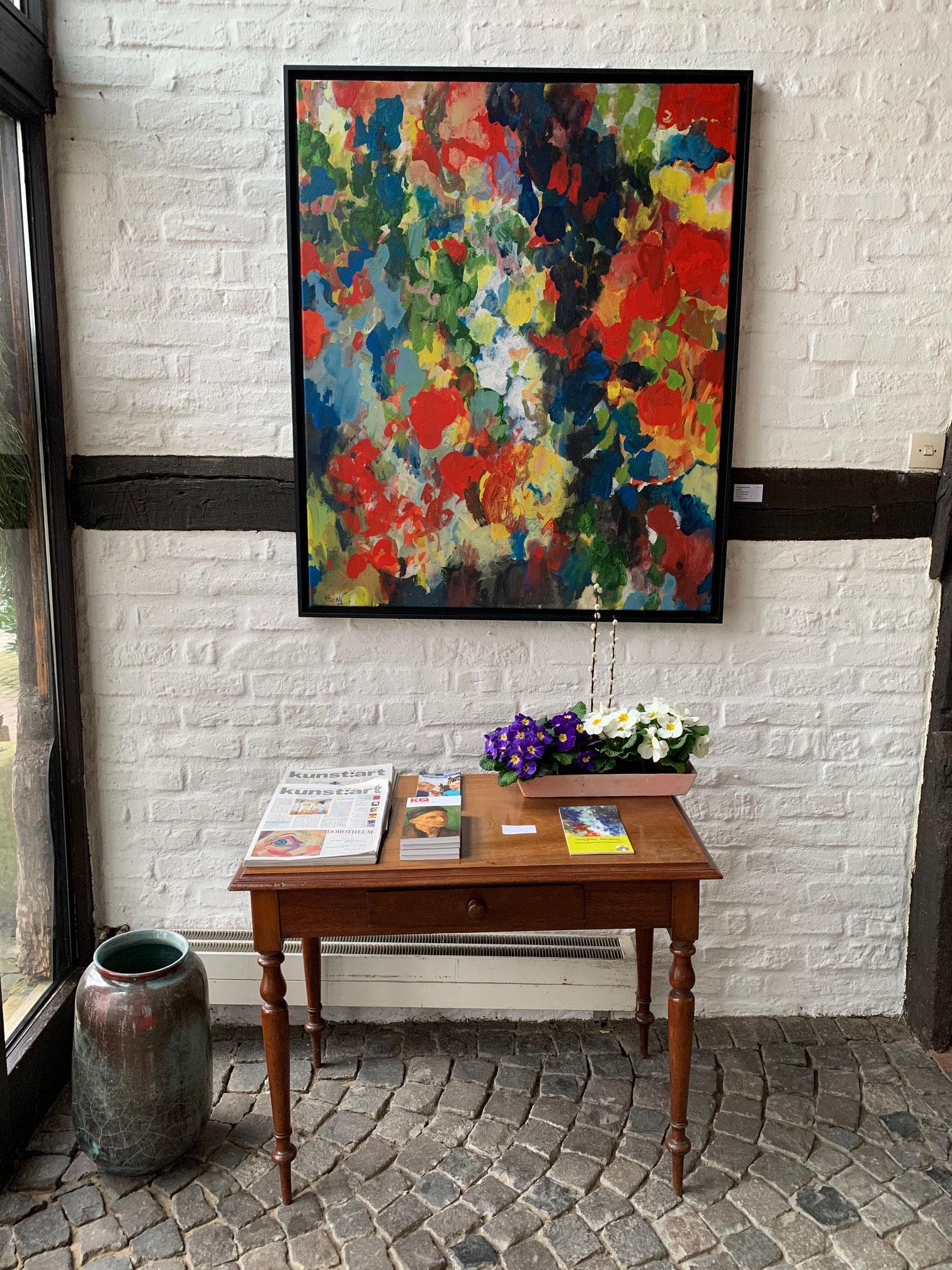 In Jelichs Malerei dominieren florale Abstraktionen. Hier sind es vor allem die großen Formate, die eine gewisse Lebhaftigkeit und Leichtigkeit, gepaart mit farbharmonischer Verspieltheit ausstrahlen.