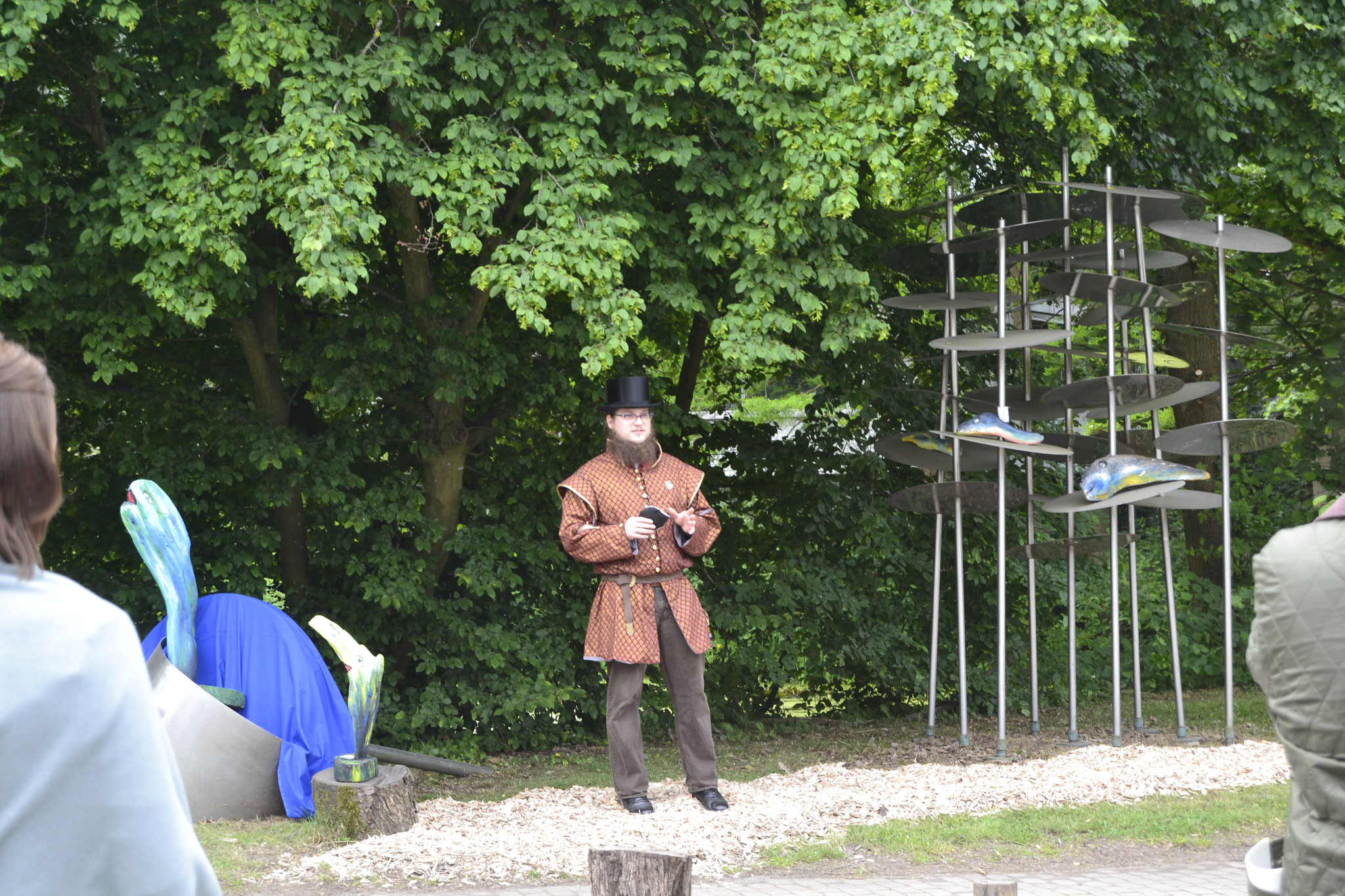 Die Hammer Fabulierkünstlerin Tanja Schreiber trat mit ihrem Erzähltheater FabulART auf dem Platz unseres Betriebshofes in Erscheinung. Die Besucher durften sich auf die wunderbare Erzählkunst passend zum Ausstellungsthema freuen.