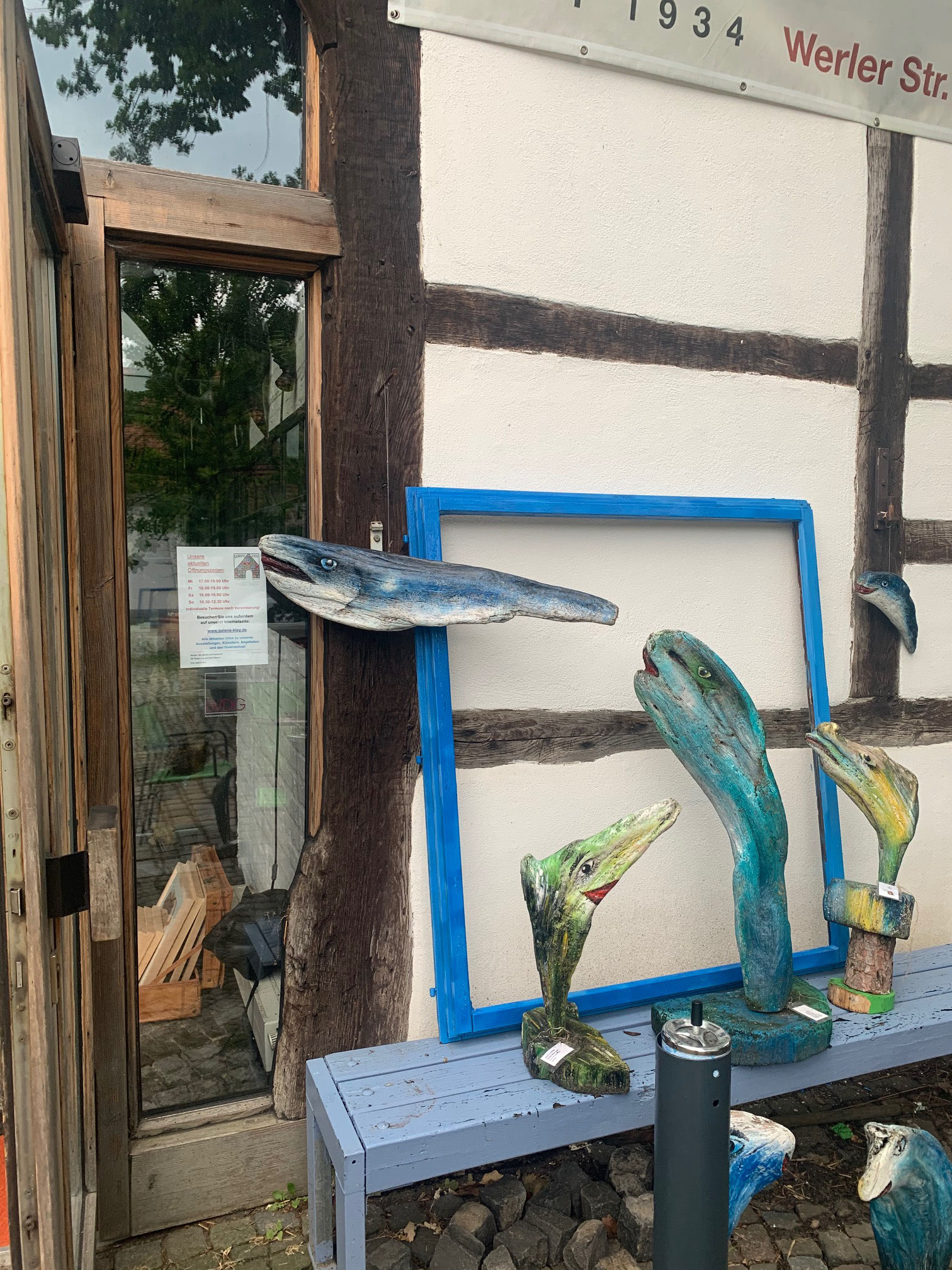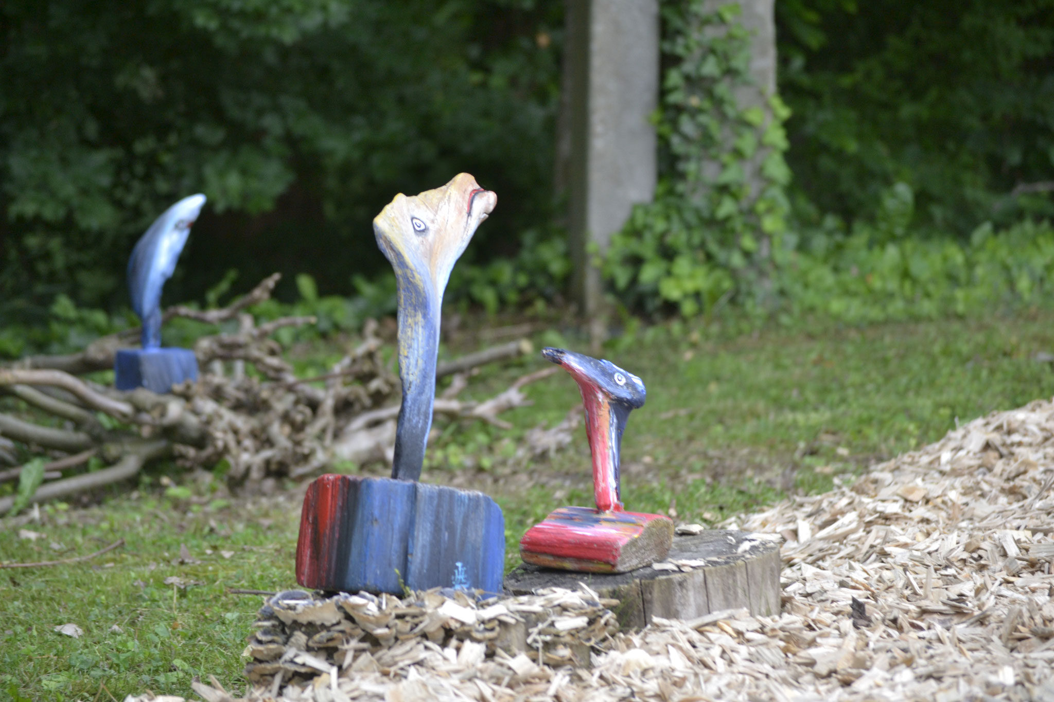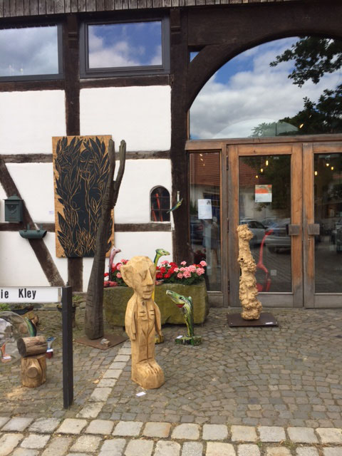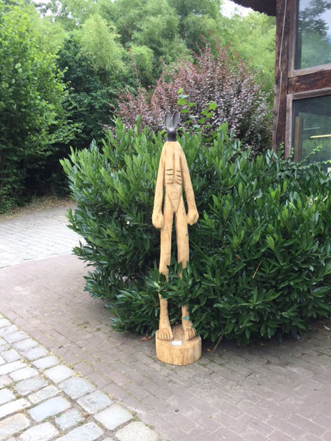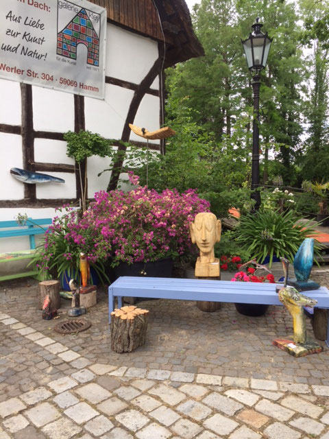 Bernd Moenikes z.B. schafft mit handwerklichem und künstlerischem Geschick Figuren, Formen und Objekte aus massiver Eiche. Mit zum Teil schwerem Gerät ausgestattet, verwirklicht der aus Dortmund stammende Künstler vorlagenfrei seine oftmals lebensgroßen Holzunikate. In unserer Ausstellung können die Werke des Künstlers im Innen- und Außenraum bewundern werden. Zu Moenikes Werk gehören neben den formal reduzierten Figuren auch fein und detailliert ausgeformte Skulpturen. In unserer Ausstellung können Letztere als Gemeinschaftsprojekt mit dem ebenfalls aus Dortmund stammenden Künstler Günter Rückert bestaunt werden.