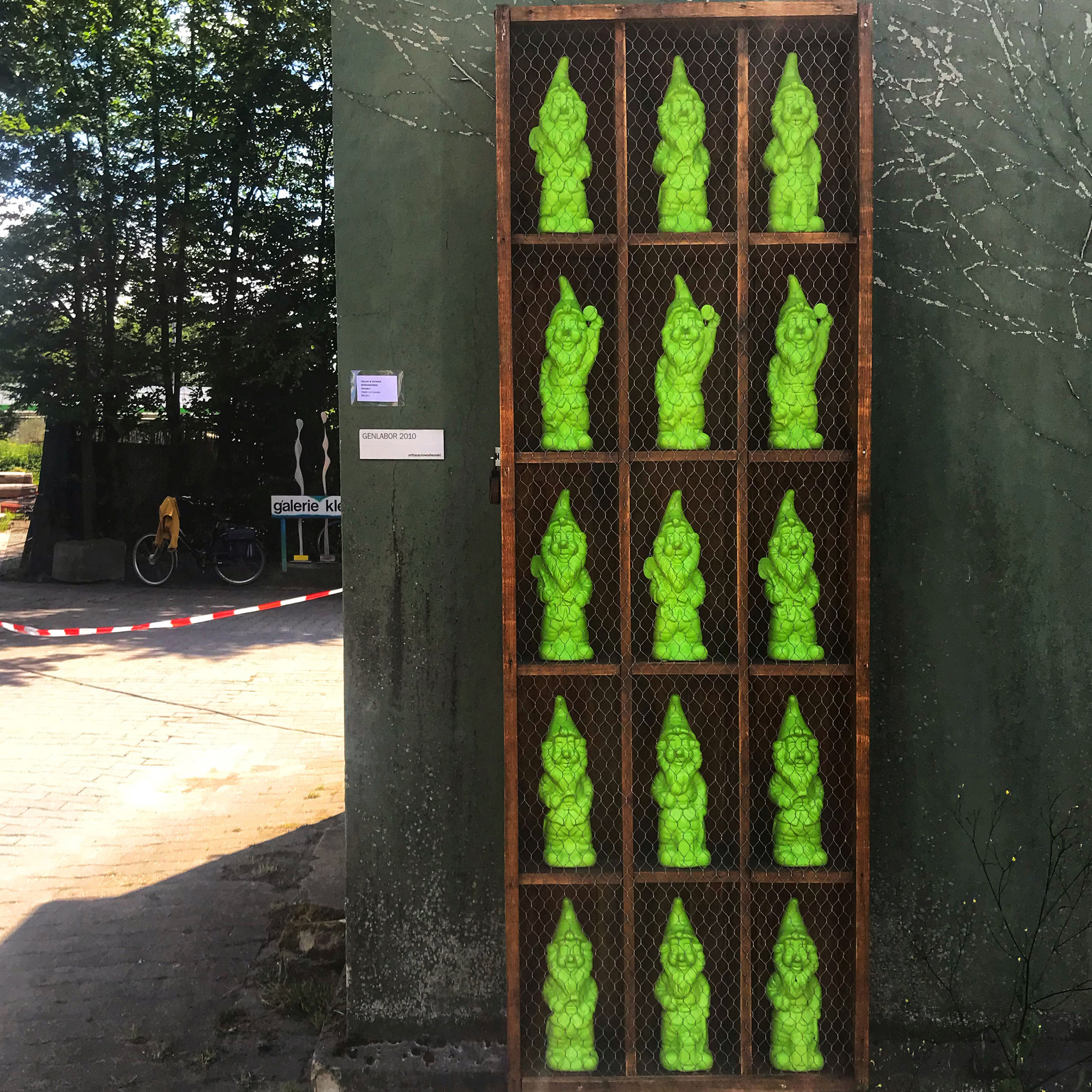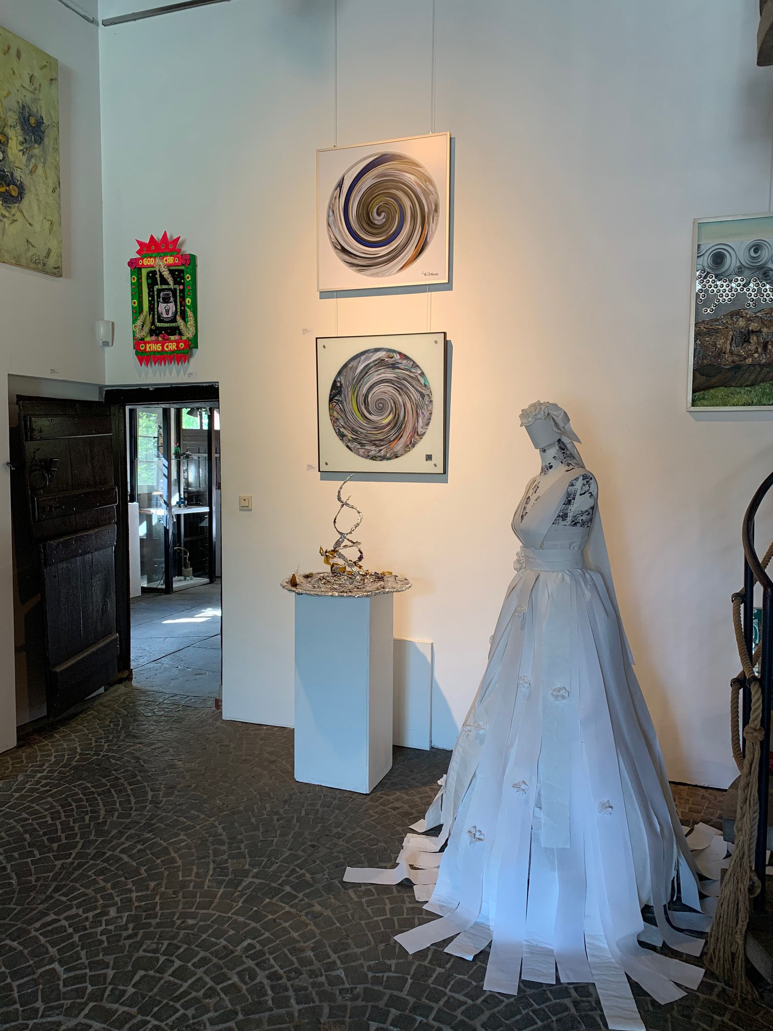 Ab in die Tonne? Mitnichten – Aus alt mach Kunst lautet die Devise unserer neuen Ausstellung „Reduce, Reuse, Recycle“ in und vor der Galerie Kley. Ob Plastiktüten, Schläuche, Holz, Tuche, Verpackungen, Elektronik, Nippes, Andenken, Gartenzwergen, Zigarettenautomaten, Brillen, Eisstiele oder LKW-Planen, handbemalte Mund-Nasenschutz-Unikate, RecyKlings und Recycling-Strudel, Wasserfälle aus Verpackungsmaterialien, Objekte aus Gummi, die Corona-Göttin, bewegte und bewegende Objekte rätselhafter oder offensichtlicher Herkunft, Kunst mit Schwämmen, Klopapier und -rollen, hölzernen Eisstielen oder Treibholz, Elbesand und Pferdehaar, echten Glasaugen, Wolle und Spiralen oder Pappresten – Mehr als 20 Künstlerinnen und Künstler von Hamm bis Kanada zeigen, wie alte und für tot erklärte Gebrauchsgegenstände mit viel Kreativität zu neuem Leben erweckt werden können. Entstanden sind ungewöhnliche Kunstobjekte von eigener Ästhetik, die sowohl im Galeriegebäude als auch auf unserem Betriebsgelände ihre neue Wertigkeit zur Schau stellen.