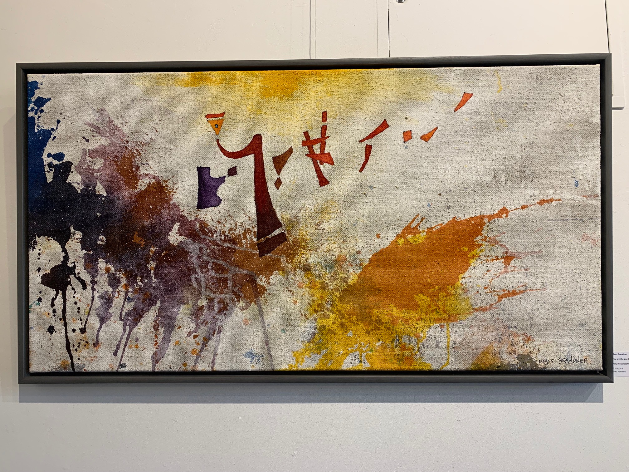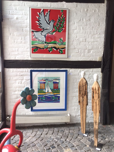Im Galerieeingang können Sie bereits Jockel Reisners Appell für den Frieden betrachten. Seine afrikanische Friedenstaube schwärmt in leuchtender