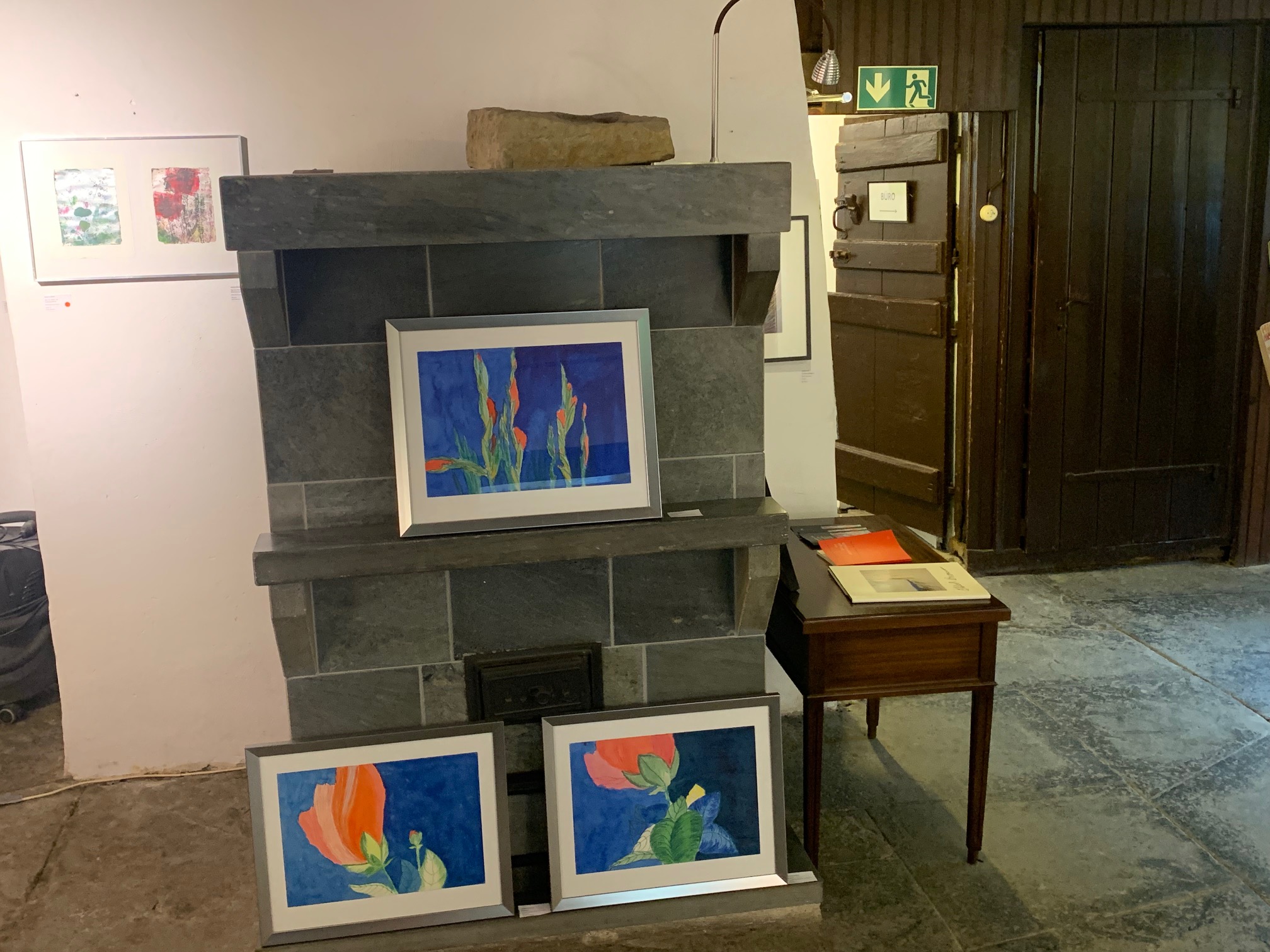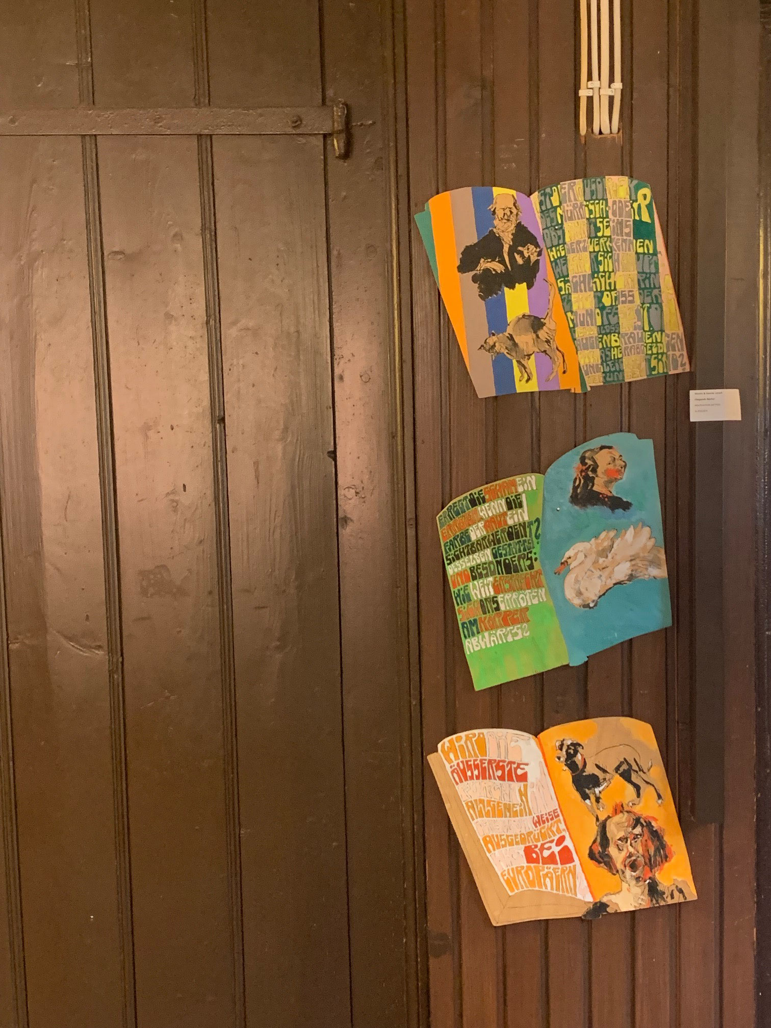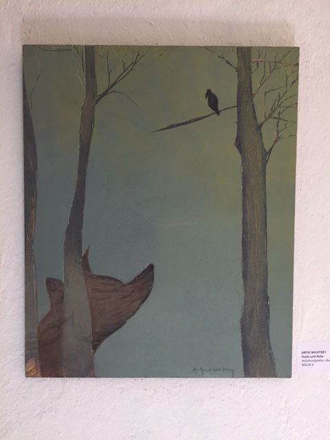 Einen Kontrast hierzu bilden die ebenfalls im Kaminzimmer ausgestellten sanft-zurückhaltenden Arbeiten der Hannoveranerin Antje Wichtrey. 6 Farbholzschnitte, von Hand auf dünnes Japanpapier gedruckt, geben Ausschnitte aus dem Hohelied Salomons (aus dem AT) wieder. Hierbei handelt es sich um eine Sammlung von zärtlichen, teilweise explizit erotischen Liebesliedern, in denen das Suchen und Finden, das Sehnen und gegenseitige Lobpreisen zweier Liebender geschildert wird. Ebenso leicht und poetisch wirken Wichtreys bemalte Druckstöcke. Sie zeigen den Abschluss einer vorausgegangenen Auflage an Holzschnitten und wurden von der Künstlerin zu eigenständigen Kunstwerken umgewandelt.