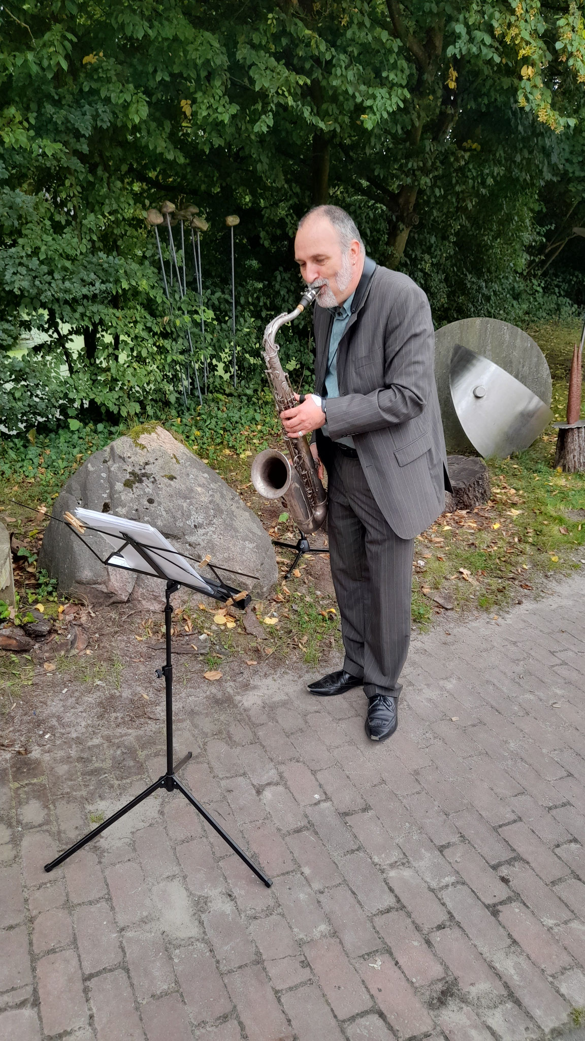 Der Soester Musiker Patrick Porsch sorgte am Saxophon für kunstvoll-akustische Momente. Und auch kulinarisch stand die Kunst im Mittelpunkt. Das Catering Knobloch versorgte die Gäste mit einzigartigen Toasts, die dem Stil Mondrians oder Kleins nachempfunden waren. Petra Damberg stillte mit Kuchen und Donauwelle auch den Hunger der Besucher mit süßem Gaumen.