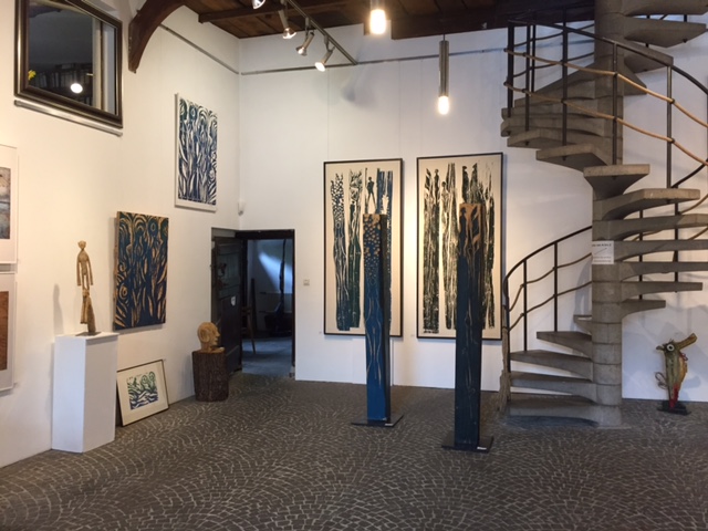 durch Titel wie „Im Holz gefunden“ oder „Frau-Baum“ deutlich. Neben der Tatsache, dass es sich bei jedem Holzschnitt um einen Unikatdruck handelt, ist die Besonderheit in dieser Ausstellung auch