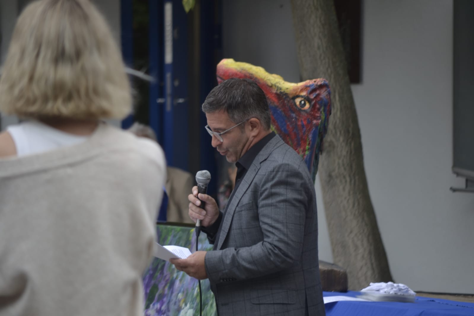 Auch der Hammer Oberbürgermeister Marc Herter ließ es sich nicht nehmen, ein Wort an die Besucher und an die Galerie zu richten sowie das langjährige Engagement von Werner Kley und die Relevanz des Hauses als Kunst- und Kulturstätte für die Stadt, aber auch überregional zu betonen.