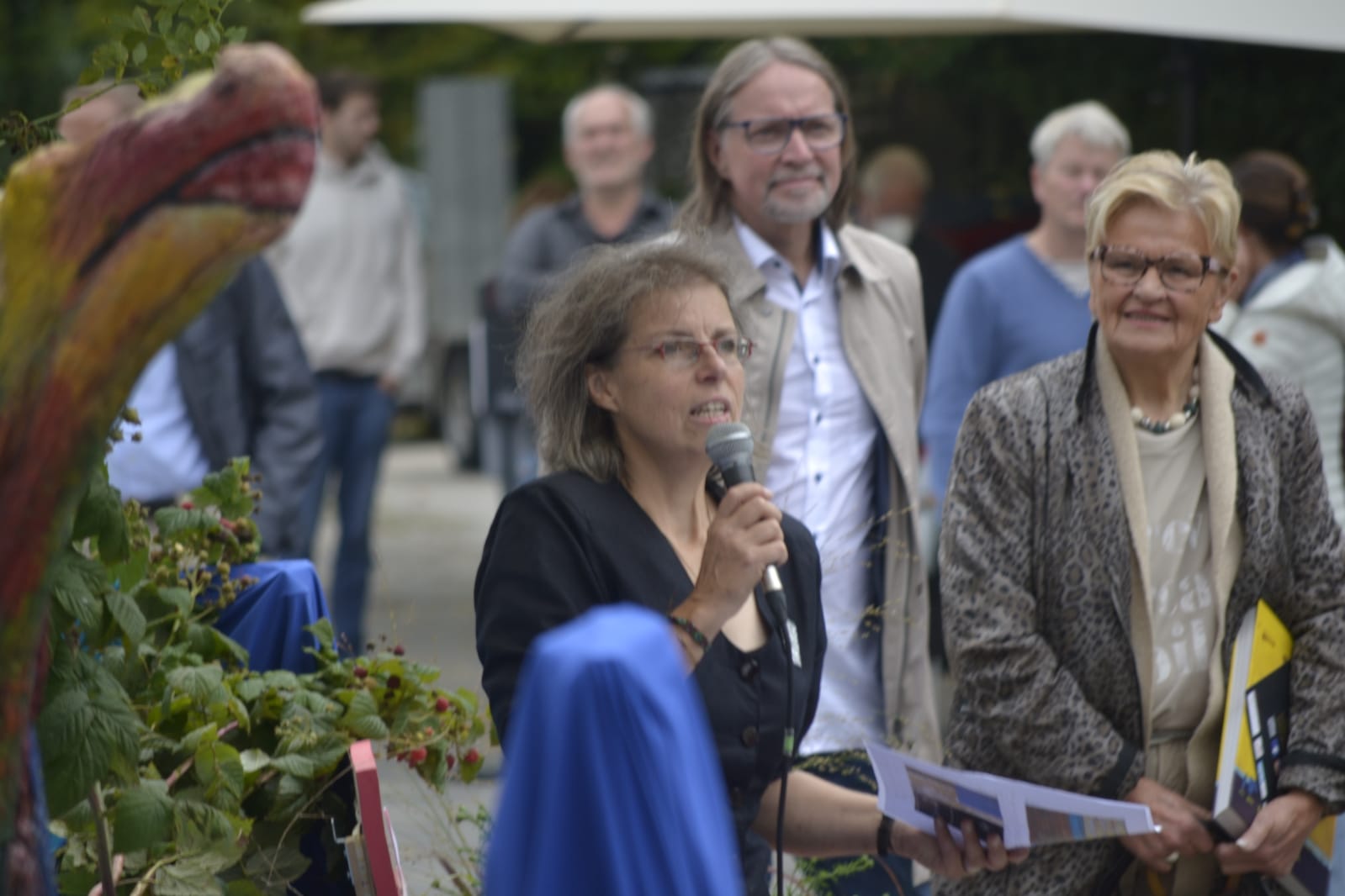 Geschäftsführerin Katrin Kley erzählte vor allem einige amüsante Anekdoten aus den 50 Jahren Galerie Kley und von ihren vielen Treffen mit den Künstlern des Hauses, die teils schon seit der Eröffnung der Galerie hier vertreten sind und die sie schon als Kind und Jugendliche kennenlernte, wie z. B. Hundertwasser.