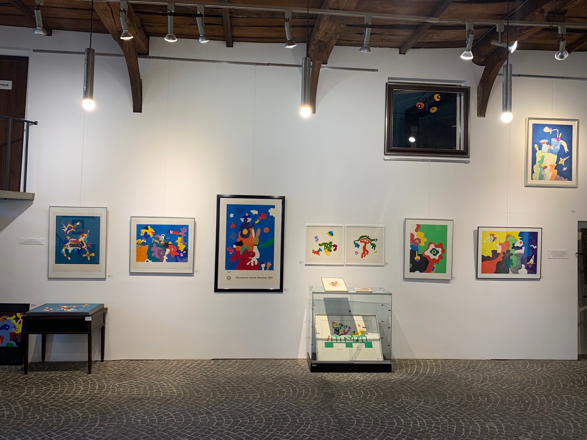 In unserer Ausstellung zeigen wir Malerei und Graphik aus der Zeit von Ende der 1960er Jahre bis Mitte der 1990er Jahre. Das graphische Werk des Künstlers besticht durch eine enorme Intensität und Vitalität der Farben ähnlich seiner Malerei. Flächig und klar in den 1970ern noch, differenzierter im Farb- und Formenverlauf und feingliedriger in den Figuren der darauffolgenden Jahre. Phantasievoll, doch nicht weltentrückt geben seine unerschöpflichen Bildthemen Auskunft darüber, was sich im Inneren des Künstlers abspielt, sei es durch persönliche Erlebnisse, Erfahrungen, Erinnerungen, Begegnungen oder dem Weltgeschehen.