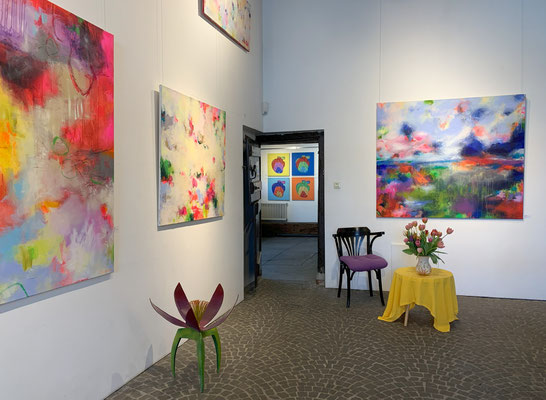Das Motto der aktuellen Ausstellung „Schwere-los“ in der Galerie Kley liegt darin mit Leichtigkeit und positiven Emotionen dieser trüben Tage hinter sich lassen und sich auf die Farb- und Fantasiewelten des österreichischen Künstlers einzulassen. Noch immer tut es gut, von den fröhlichen Farben und Formen innerhalb der zwei Werkgruppen Malerei und Grafik umgeben zu sein ein.