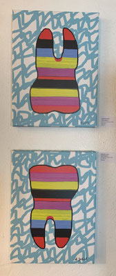 Dazu das bewegte und bewegende Spiel zweier oder mehrerer Formen, die aufeinandertreffen - das Kindhafte und Verspielte der Figuren - die Fröhlichkeit der Farben: All dies berührt den Betrachter auf einer spontanen und emotionalen Ebene.